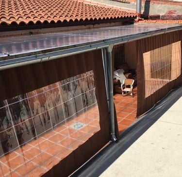 TOLDOS VERTICALES - Perfectos para proteger ventanas y escaparates, los toldos verticales ofrecen privacidad y sombra sin ocupar espacio en el suelo. Su instalación es rápida y pueden integrarse con motorización para un uso mas cómodo.